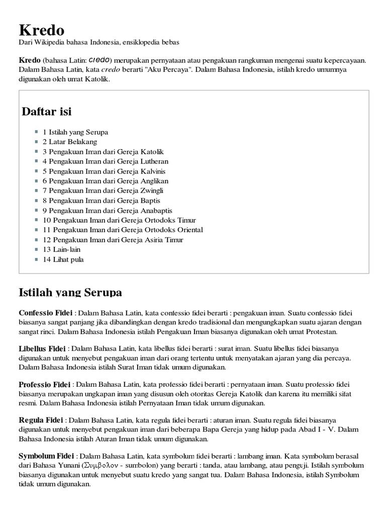 Yang duduk di sebelah kanan sang bapa. Kami percaya kepada satu allah, bapa yang mahakuasa, pencipta langit dan bumi, segala yang kelihatan dan yang tidak kelihatan. Dalam praktiknya gki mengakui pengakuan iman rasuli, pengakuan iman nicea konstantinopel, dan pengakuan iman athanasius. Aku percaya kepada satu allah, bapa yang mahakuasa, pencipta langit dan bumi menderita dan dikuburkan, yang bangkit pada hari ketiga. Look through examples of pengakuan iman translation in sentences, listen to pronunciation and fisher, dalam history of europe, pengakuan (iman) yang baru.